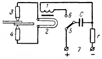 Рис. 17-10. Схема работы конденсаторной точечной сварочной машины.