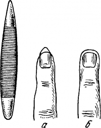 Особого внимания требует уход за руками. Медицинский работник моет руки не только перед едой и после посещения уборной, но и перед каждой медицинской манипуляцией и после нее. Медицинские работники, особенно те из них, которые имеют отношение к хирургии (операционные сестры, акушерки и т. д.), должны строго оберегать свои руки от загрязнения. Выполнять грязные виды домашней работы (мытье пола, уборка санитарного узла в квартире, чистка овощей и т. д.) следует в перчатках. Ногти нужно коротко стричь и подпиливать (рис. 6). Кожный край ногтевого ложа обрезать не следует, так как это является частой причиной образования заусениц, а затем и гнойников. Окраска ногтей лаком не рекомендуется. Мыть руки нужно со щеткой. Это необходимо, с одной стороны, для того, чтобы очистить от грязи околоногтевые и подногтевые пространства, а с другой — чтобы кожа в этих областях стала несколько грубее. Частое мытье рук ведет к сухости кожи, поэтому ее нужно постоянно питать, смазывая ежедневно на ночь и после работы каким-нибудь жиром, можно смесью глицерина с нашатырем (1/4 нашатырного, спирта смешать с 3/4 глицерина и втирать эту смесь в кожу рук после мытья).