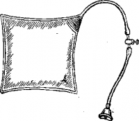 Кислородная подушка (рис. 56)— это % прорезиненный мешок емкостью 25—75 л, имеющий у одного из углов резиновую трубку с краном и воронкой. Наполняется она из кислородного баллона после присоединения к нему особого прибора — редуктора, который понижает давление до 1—2 атм.