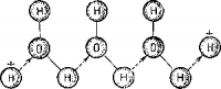 Характерной особенностью движения ионов водорода является цепной, или эстафетный, механизм. Ион водорода приближается к молекуле воды (рис. 11), возникает водородная связь. Затем эта связь переходит в обычную химическую (ковалентную), а ион водорода, ранее входивший в состав молекулы воды, отщепляется. Он присоединяется к следующей молекуле, от которой также одновременно отделится ион водорода, и процесс будет продолжаться, развиваясь по цепи молекул воды. Можно сказать, что результатом приближения иона водорода к одному концу цепи молекул воды было отщепление попа водорода от другого конца цепи. Быстрота, с которой совершился весь этот процесс, зависит не от скорости движения иона, а от скорости обмена ионами водорода между молекулами воды. В кристалле льда обмен идет легко, так как молекулы льда менее подвижны и, кроме того, весь кристалл льда в целом представляет собой упорядоченную структуру; в жидкой воде, как мы уже знаем, наряду с упорядоченными областями встречаются и хаотизированные. Итак, во льду, оказывается, двигаться легче, чем в воде; на самом деле, лед ускоряет многие реакции, которые требуют участия ионов водорода, лед настоящий катализатор. Похожие па лед айсберги существуют и в организмах. В них, следовательно, тоже легче протекают различные реакции.