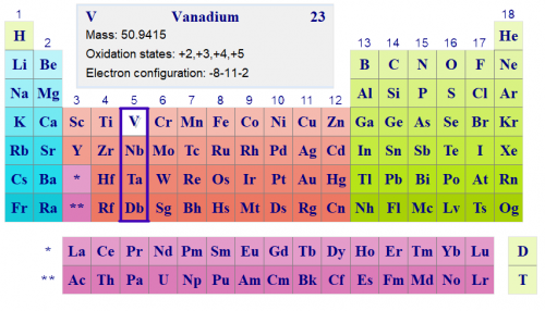 Ванадий V, ниобий Nb, тантал Та — ( устаревшая классификация: элементы побочной подгруппы V группы) — принадлежат к числу d-элементов, так как у них в процессе завершения d-оболочка пред внешнего слоя.